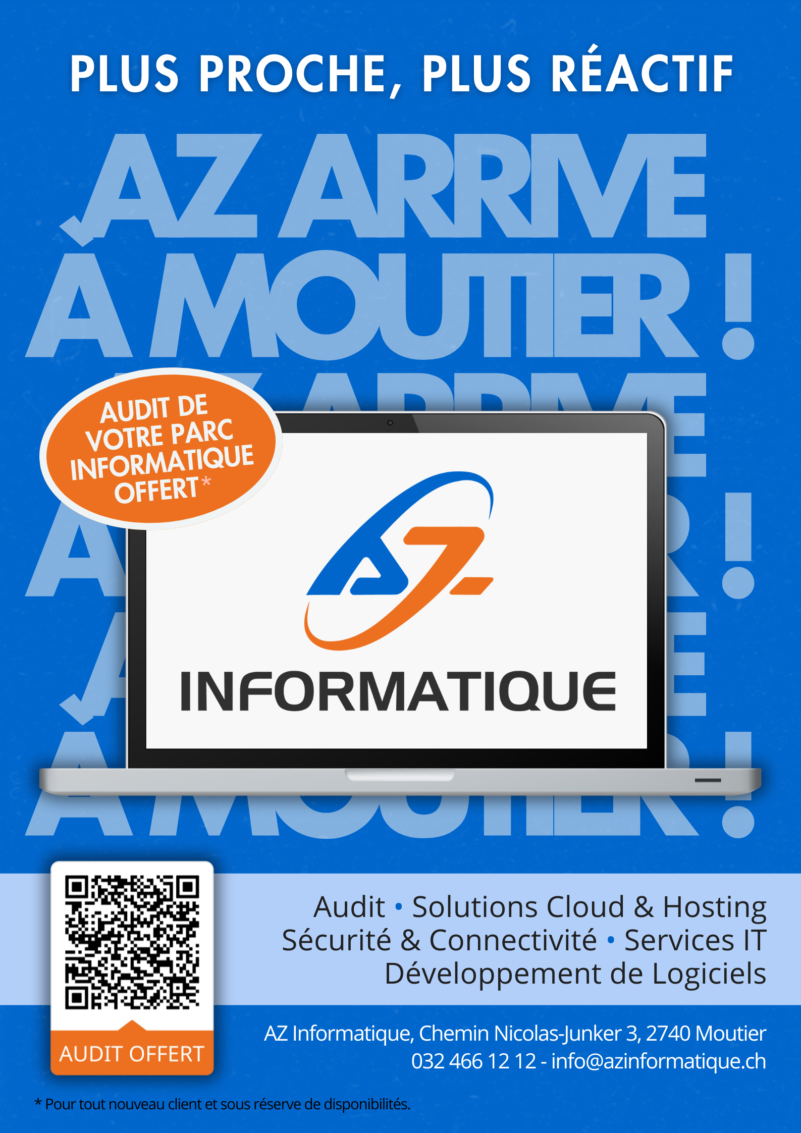 Ainsi, AZ Informatique franchit une nouvelle étape dans son développement avec l’ouverture d’une succursale à Moutier. Cette implantation s’inscrit dans une volonté claire : renforcer la proximité avec les entreprises et les administrations du Jura, du Jura bernois et de l’ensemble de la Suisse romande. L’idée étant d’offrir des interventions plus rapides, un accompagnement plus direct et une relation encore plus humaine.